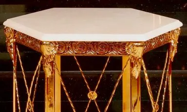► Pirinç sehpa beyaz desenli mermer tabla