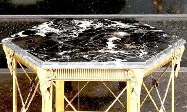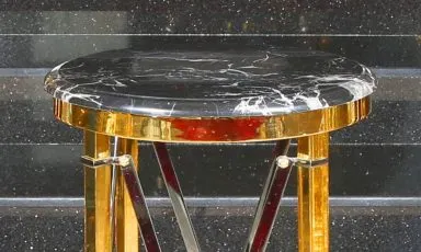 ► Bronz sehpa siyah desenli mermer tabla