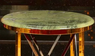 ► Bronz sehpa yeşil desenli mermer tabla